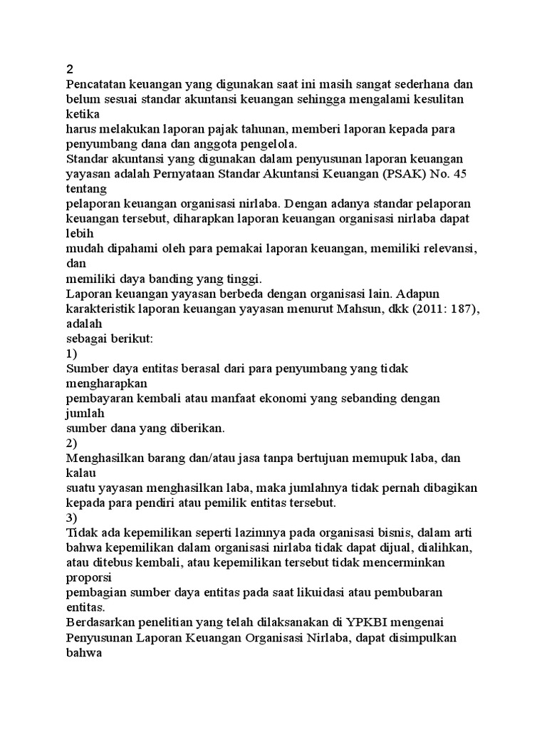 (2) sulitnya memperoleh data laporan keuangan organisasi nirlaba membuat riset akuntansi keuangan pada organisasi nirlaba menjadi sangat sulit, bahkan mustahil.
